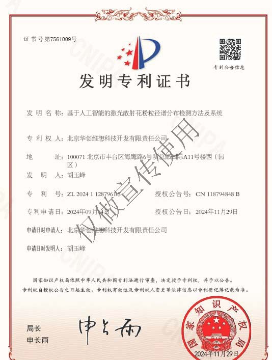 花粉粒徑譜分布檢測(cè)方法及系統(tǒng)獲得國(guó)家發(fā)明專(zhuān)利